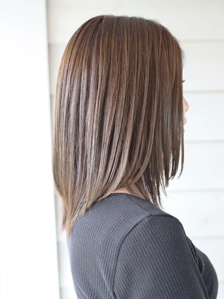 今回は、パーマをかけずに、手持ちのアイロンでカールできるようなスタイルに、お願いしました。
